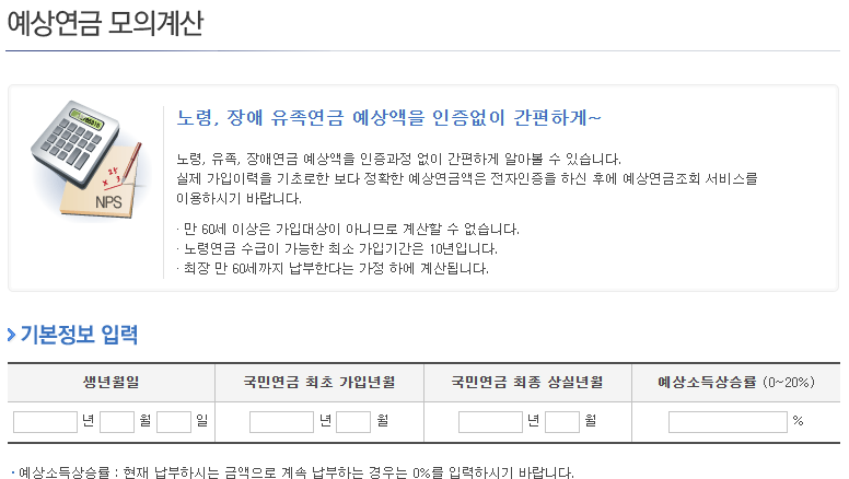 예상연금 모의계산