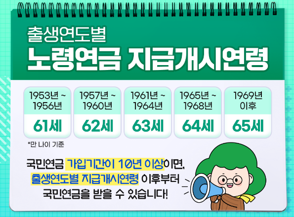 국민연금 수령 나이는 출생 연도에 따라 달라진다.
