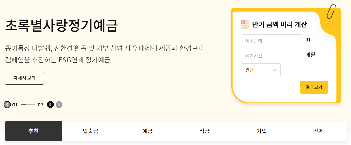 다양한 상품: 정기예금, 자유저축예금, 적립식 예금 등 다양한 상품군이 마련되어 있어 개인의 금융 상황에 맞는 선택이 가능합니다.