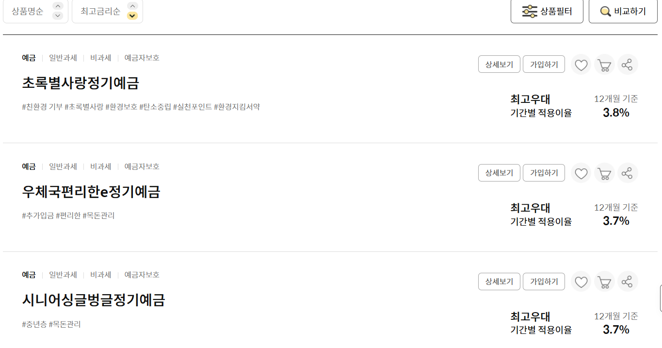 우체국 예금금리 비교