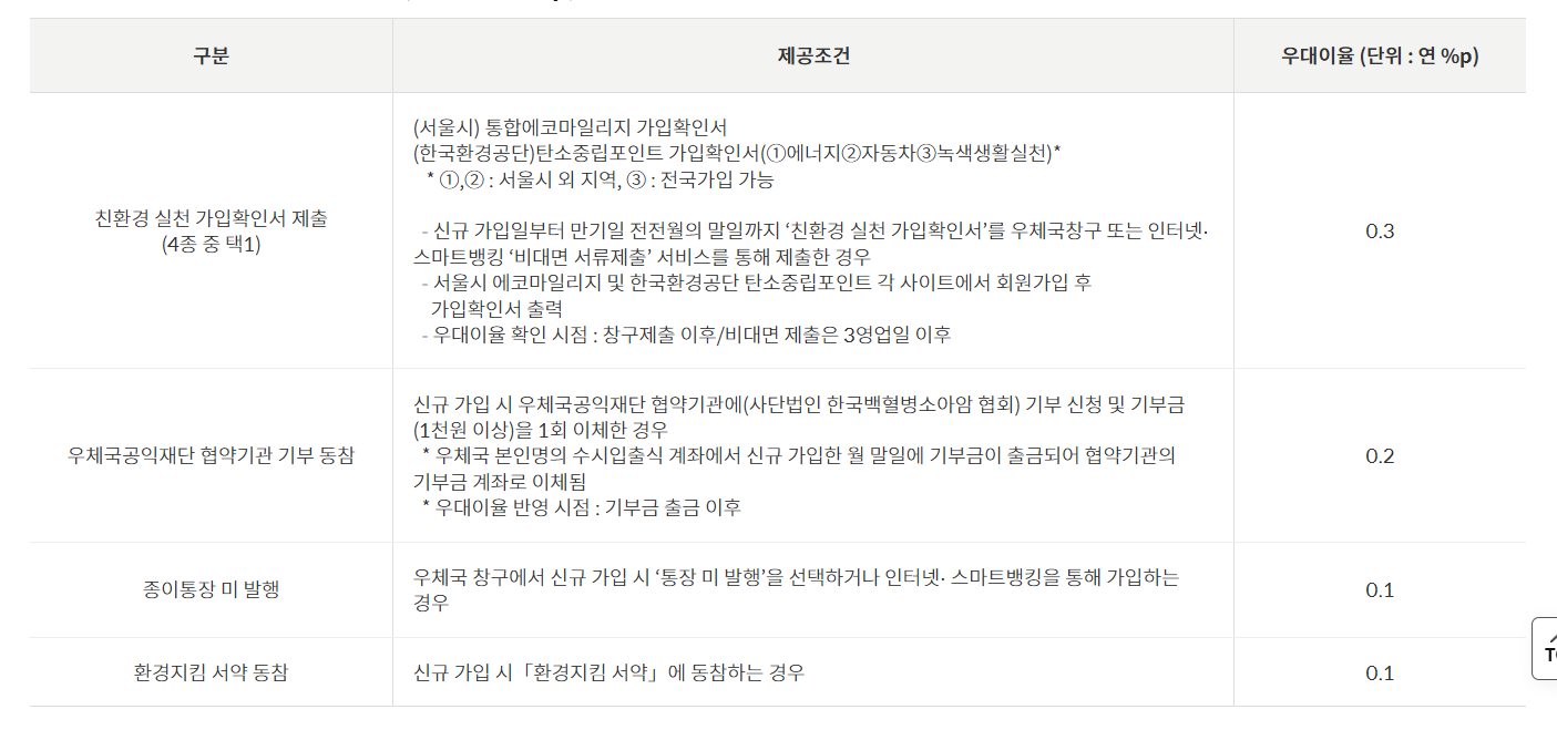 우대 금리 조건은 아래와 같습니다.